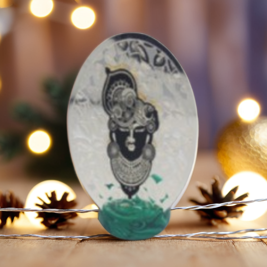 Celebrate the intricate charm of tribal elegance with this engraved face sculpture, mounted on a green stone base. A powerful symbol of strength and mystique for your curated corners.