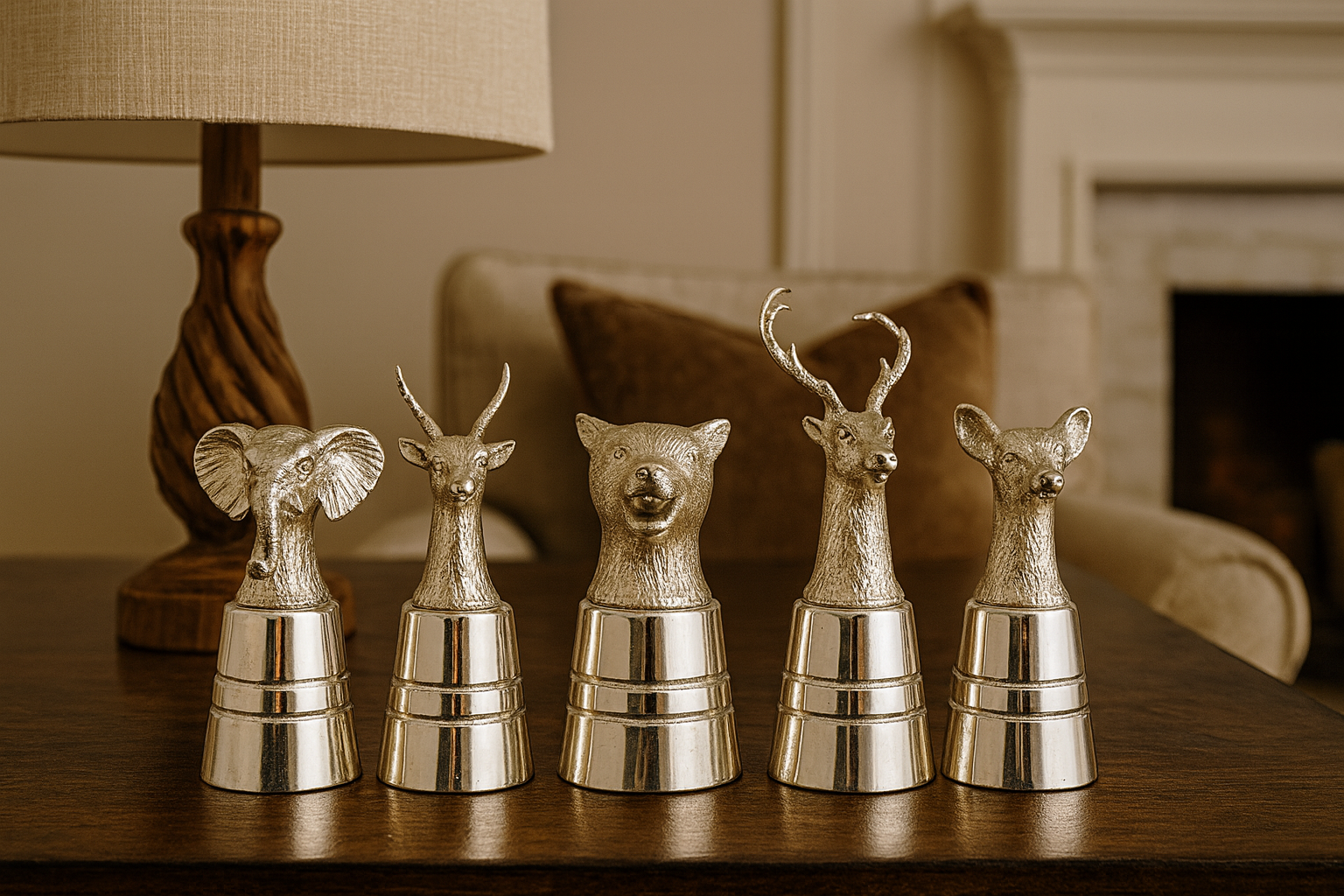 Crafted with exquisite detail, The Majestic Wild showcases a silver animal ensemble capturing the spirit of deer and forest creatures. A stunning addition to a mantle or gifting table, this set channels grace and wilderness in perfect harmony.