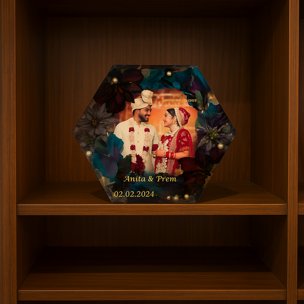 Bound by love and sealed in eternity, this varmala is more than just a symbol; it carries the essence of our sacred promises and the beginning of our beautiful journey together. Adorned with roses that signify our deep passion and pearls that embody the purity of our bond, it reflects the harmony and elegance of our union. Encased within this frame, it captures the whispers of our vows and the joy of the moment when two souls became one. This timeless keepsake will forever remind us of the day our hearts intertwined, celebrating the love and commitment that define our forever.